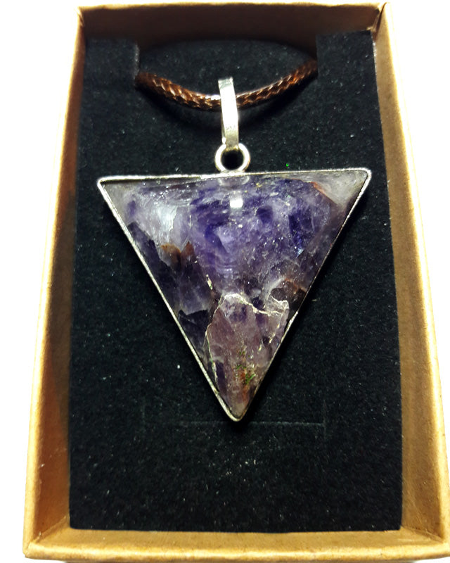 The job of a Pyramid in a pendant, then, is to draw the energy of the stone in which it's fashioned, and focus that energy toward it's base, which rests on the wearer, slightly above the heart.
