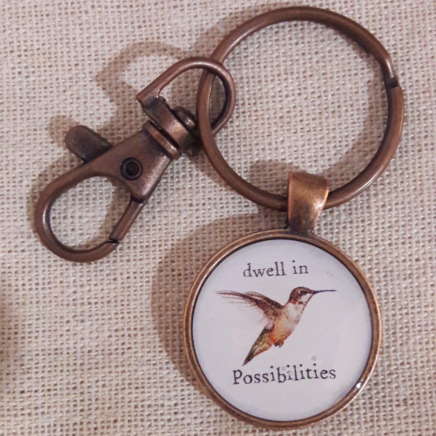 Available in Copper Tone or Silver Tone metal keychain with hand poured resin dome.