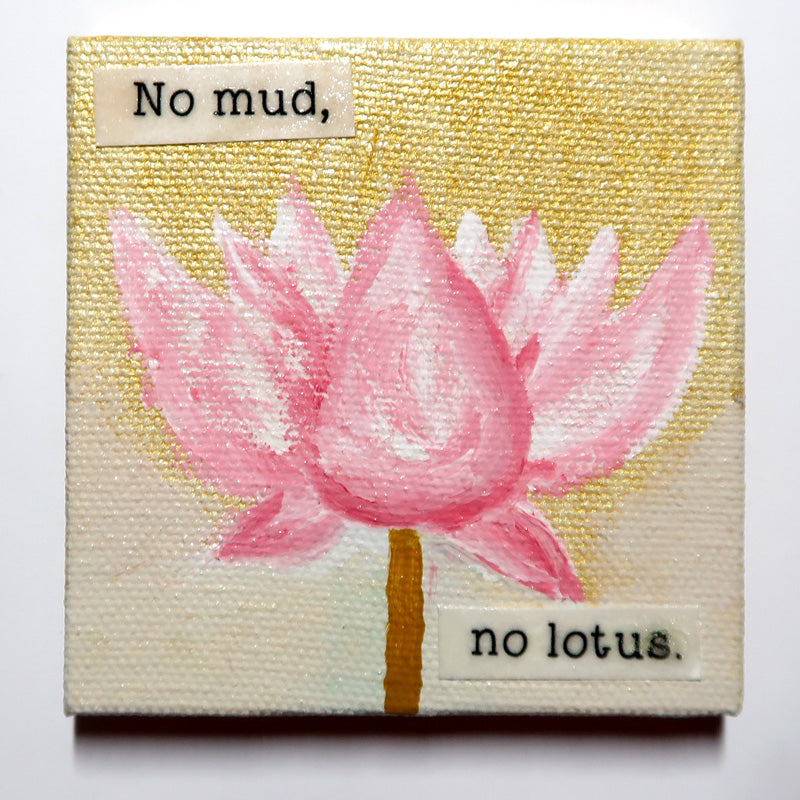 No mud, no lotus. - Original Mixed Media mini canvas Painting by Doe Zantamata