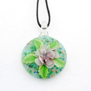 Pink Lotus Flower Wearable Art Handmade Glass Pendant and Necklace