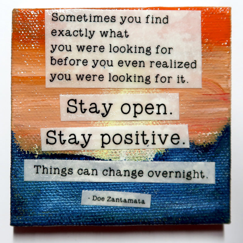 "Sometimes you find exactly what you were looking for before you even realized you were looking for it. Stay open. Stay positive. Things can change overnight."